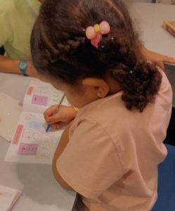 كذلك قالت الابنة رغد : كانت دورة تعليم اللغة اليابانية مفيدة كثيرا حيث تعلمت بعض الحروف والكلمات. ألف شكر لجمعية كيان التي أحبها .