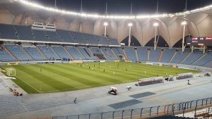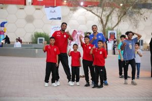 لاعبو نادي الرياض يدخلون الملعب بمرافقة عددا من أبناء جمعية كيان