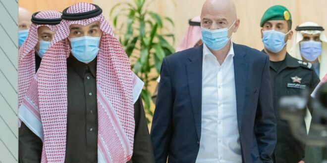 وجرى خلال اللقاء بحث العلاقات المشتركة بين الجانبين نحو تحقيق مستقبل زاهر لرياضة كرة القدم، وسبل التعاون بين الجانبين بما يخدم هذه الرياضة الشعبية العالمية، وكتأكيد لدور المملكة الريادي على خارطة كرة القدم العالمية وامتداداً لدعم مسيرة الاتحاد الدولي نحو تحقيق الرؤى والأهداف المشتركة التي تخدم هذه اللعبة.