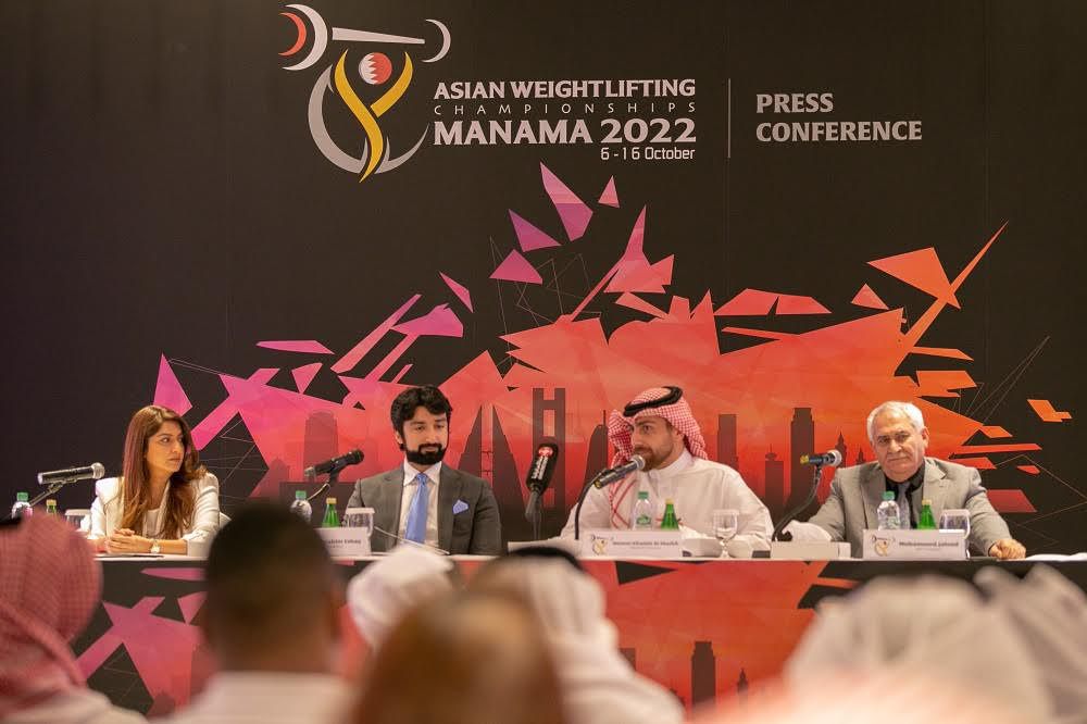 عُقد يوم أمس بقاعة جلجامش بفندق جولدن توليب المؤتمر الصحافي الخاص لبطولة آسيا لرفع الأثقال 2022، والتي تستضيفها مملكة البحرين تحت رعاية سمو الشيخ خالد بن حمد آل خليفة النائب الأول لرئيس المجلس الأعلى للشباب والرياضة رئيس الهيئة العامة للرياضة رئيس اللجنة الأولمبية البحرينية، والتي ينظمها الاتحاد البحريني لرفع الأثقال تحت إشراف الاتحاد الآسيوي لرفع الأثقال في الفترة 6- 16 أكتوبر المقبل وذلك فندق كراون بلازا.