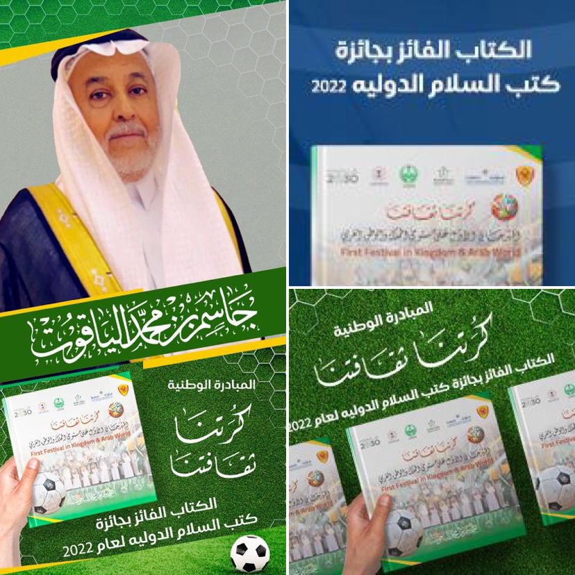 وقد فاز الكتاب الوثائقي للمبادرة الوطنية كرتنا ثقافتنا للإعلامي الكبير الدكتور جاسم الياقوت بجائزة كتب السلام الدولية لعام 2022 الدولية في نسختها السادسة حيث سيتم تكريم الدكتور الياقوت في الحفل الكبير الذي تقيمه الجمعية الدولية لكتب السلام بالتعاون مع الهيئة الدولية للتسامح وندوة الثقافة والعلوم في دبي في 11 سبتمبر القادم.