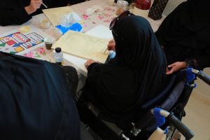 وقالت بأن من المبادرات التي تعمل عليها الجمعية مبادرة  الزخرفة الإسلامية وتدريب الأشخاص ذوي الإعاقة الحركية و الصم رجالا ونساء  على فنون الزخرفة التي  تهدف إلى تكوين المهارات الإبداعية لدى المستفيدين من هذه الفئة وبناء مفهوم الجمال الإبداعي الذي يظهر من هذا الفن الإسلامي الأصيل ليعبر عن مكنونات القدر الكبير من الذوق الحضاري لنهضة هذه البلاد ويكون هذا المشروع فرصة سانحة لتقديم المبدعين للساحة بتجليات إبداعاتهم التي ستظهر من خلال تنفيذ هذا المشروع النوعي .