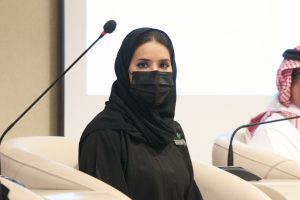 في حين تطرقت د .منال المحيميد لإسهامات الأدب والثقافة في تعزيز الهوية الوطنية وقالت ” للمؤسسات الثقافية دور بارز في تحقيق الركائز الاستراتيجية الثلاث لرؤية المملكة، المتمثلة في بناء: مجتمع حيوي، اقتصاد مزدهر، وَ وطن طموح ، و شهدنا مؤخرا دور المؤسسات الثقافية بكل مجالاتها ورأينا جهدها في فتح آفاق الحوار الثقافي مع العالم من خلال الاعتزاز بالتراث السعودي ، و النتاج الأدبي الوطني في الشعر السعودي تجاوز بغزارته ما أنتج في العقود الماضية ، و الذات الوطنية عند الأدباء السعوديين تجلت في حديثها عن: المناسبات، الفخر الخالص، القيادات، المنجزات ، قدسية المكان، التاريخ، الحاضر المزدهر، الحنين ، و بعدما وجدت الرؤية؛ وربانها الشاب الجريء ولي العهد الأمير محمد بن سلمان ورجال نذروا أنفسهم لتوحيد الجبهة الإعلامية.
