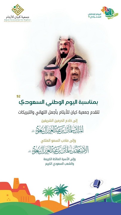 جمعية كيان للأيتام تهنئ القيادة والشعب السعودي باليوم الوطني92