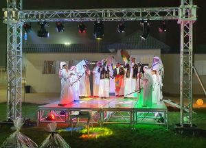 ثم ابتهج الجميع  باستعراض القفز على الحواجز ، بينما قدم على المسرح “أوبريت سيرة المجد لأبناء كيان” قدموا خلاله استعراضا رائعا وجميلا أدهش الجميع ، بعد ذلك تحدثت  الابنة دانه منصور من  فتيات دار الحضانة الاجتماعية فلل الربوة استعراضا مختصرا عن مشروع العلا وأهميته السياحية ، ثم تحدثت الابنة لمياء عمران أيضا من  فتيات دار الحضانة الاجتماعية فلل الربوة عن  مشروع نيوم السياحي الرائع .