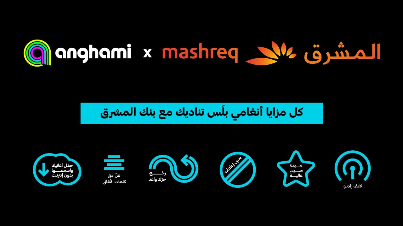 وتهدف هذه الشراكة الاستراتيجية إلى إثراء تجربة عملاء المشرق عبر منح عملاء البنك الجدد و أولئك الذين يحولون رواتبهم إلى حسابات تابعة له، فرصة الاستمتاع بسهولة وغير محدود بدون قيود أو إعلانات إلى مكتبة أنغامي التي تضم أكثر من 72 مليون أغنية، وأكثر من 400 ألف بودكاست، إلى جانب مقاطع الفيديو والحفلات الحصرية وغير ذلك الكثير. وستتيح هذه الشراكة لهم تحميل عدد غير محدود من الأغاني للاستماع إليها بدون أي حاجة للاتصال بالإنترنت. كما يمكنهم الاطلاع على كلمات الأغاني والتحكم بمفاتيح الوسائط المخصصة للمشتركين، وذلك للتحكم في خصائص الصوت عند الاستماع إلى أعمالهم المفضلة أو المحتوى الترفيهي الآخر مثل محطات البث الإذاعي المباشرة (لايڤ راديو). بدوره، سيعمل المشرق على الترويج لمنصة أنغامي عبر كافة وحدات أعماله.