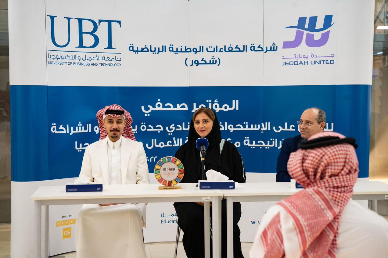 وفي أول تحالف رياضي وتعليمي واقتصادي، جرى الاعلان عن تأسيس شركة الكفاءات الوطنية الرياضية “شكور” التي تستحوذ على جدة يونايتد من خلال شراكة استراتيجية مع جامعة الأعمال والتكنولوجيا، خلال مؤتمر صحفي عقد بمقر الجامعة وسط حضور إعلامي ورياضي كبير، وبوجود عدد من الشخصيات الاكاديمية والاقتصادية.