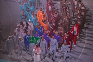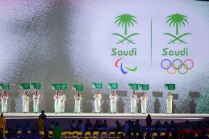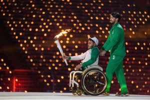 وبدء الحفل بالسلام الملكي ثم مسيرة الرياضيين المشاركين وأعلام اللجنة الأولمبية والبارالمبية .