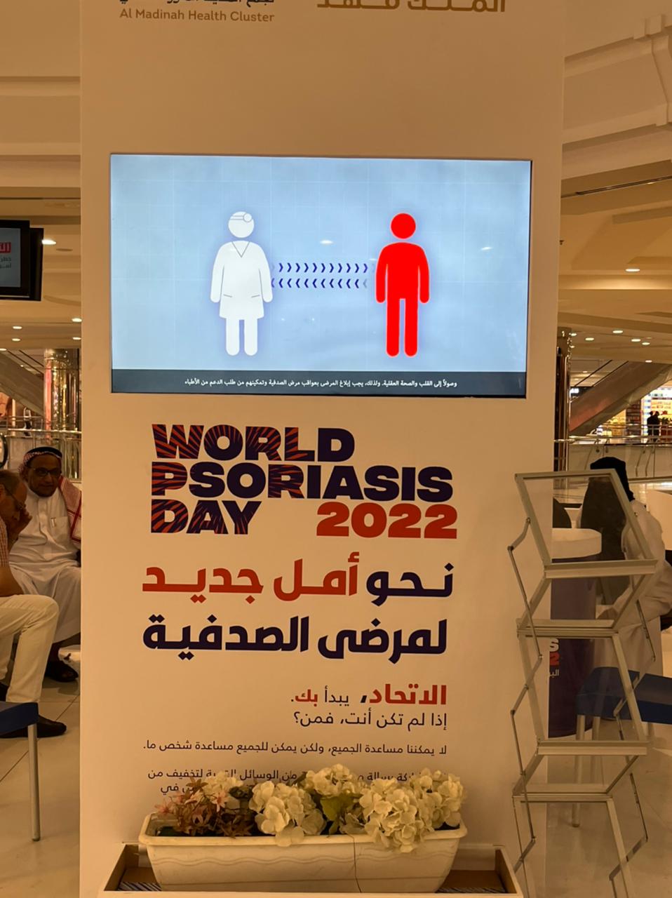 نظم تجمع المدينة الصحي ممثلاً بقسم الجلدية في مستشفى الملك فهد بالمدينة فعالية يوم الصدفية العالمي والذي اختتم اليوم السبت ٢٩ أكتوبر واستمر على مدى ثلاثة أيام تحت شعار ( نحو أمل جديد لمرضى الصدفية) في مجمع الراشد مول .