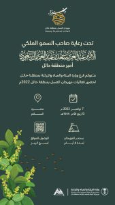 برعاية كريمة من صاحب السمو الملكي الأمير عبدالعزيز بن سعد بن عبدالعزيز أمير منطقة حائل، ينطلق يوم الاثنين 7/نوفمبر مهرجان العسل ٢٠٢٢، في متنزه السلام تحت إشراف وتنظيم فرع وزارة البيئة والمياه والزراعة في المنطقة، مشتملاً المهرجان على عرض أنواعاً مختلفة من العسل التي تتميز به المنطقة مثل عسل السدر، وعسل الطلح، والعديد من الأنواع المختلفة، ويشارك في عرض هذه الأنواع عدد من النحالين بمنطقة حائل.