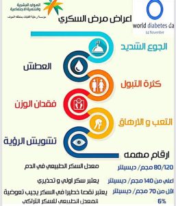 وطرق الوقاية من داء السكري من خلال اتباع نظام غذائي صحي، وممارسة النشاط البدني ،وتعزيز دور الأسرة في التثقيف الصحي في علاج داء السكري.