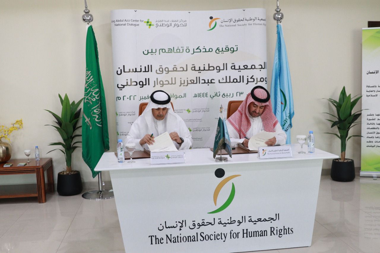 الجمعية الوطنية لحقوق الإنسان توقع مذكرة تفاهم مع مركز الملك عبدالعزيز للحوار الوطني