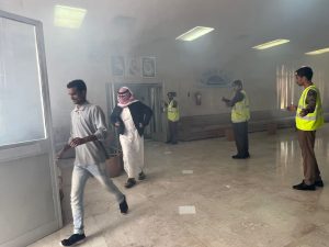 خطه افتراضية لحريق بمبنى مركز التنمية الاجتماعية بدومة الجندل .