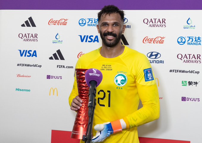 توج حارس مرمى منتخبنا الوطني محمد العويس بجائزة أفضل لاعب في مباراة السعودية والأرجنتين التي أقيمت اليوم الثلاثاء وانتهت بفوز المنتخب بهدفين لهدف.