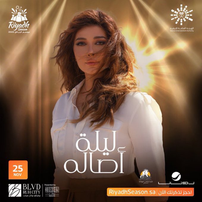 ونشر الموقع “بوستر” الحفلة، وكتب عليه: “بشموخ عز أغانيها.. تضوينا بشمس صوتها في حفلة تحييها الفنانة أصالة على مسرح محمد عبده أرينا في بوليفارد سيتي يوم 25 نوفمبر”.