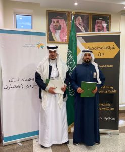 وقعت وحدة الخدمات المساندة للأشخاص ذوي الإعاقة بالجوف عقد شراكة مع مجموعة صفوة المهيدب لطب الاسنان ، مثل الوحدة أ/ ونيس بن خشمان الشمري ، بينما مثل مجموعة المهيدب أ/ عبدالله احمد الضويحي .
