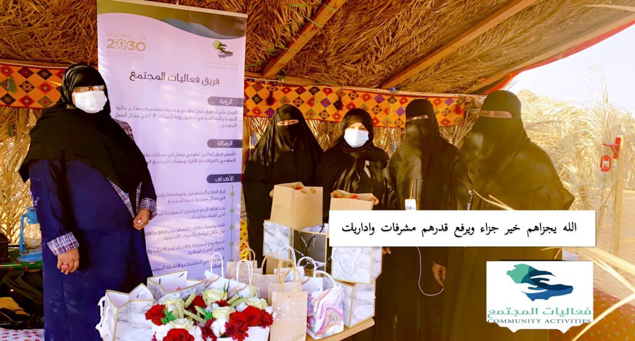 مثل فريق فعاليات المجتمع التطوعي الأستاذة فاتن المريدي ، والأستاذة لطيفه بنت محمد ابن حميد ، والأستاذة هند الجساس ، و الإخصائية الاجتماعية صالحة الشهري.