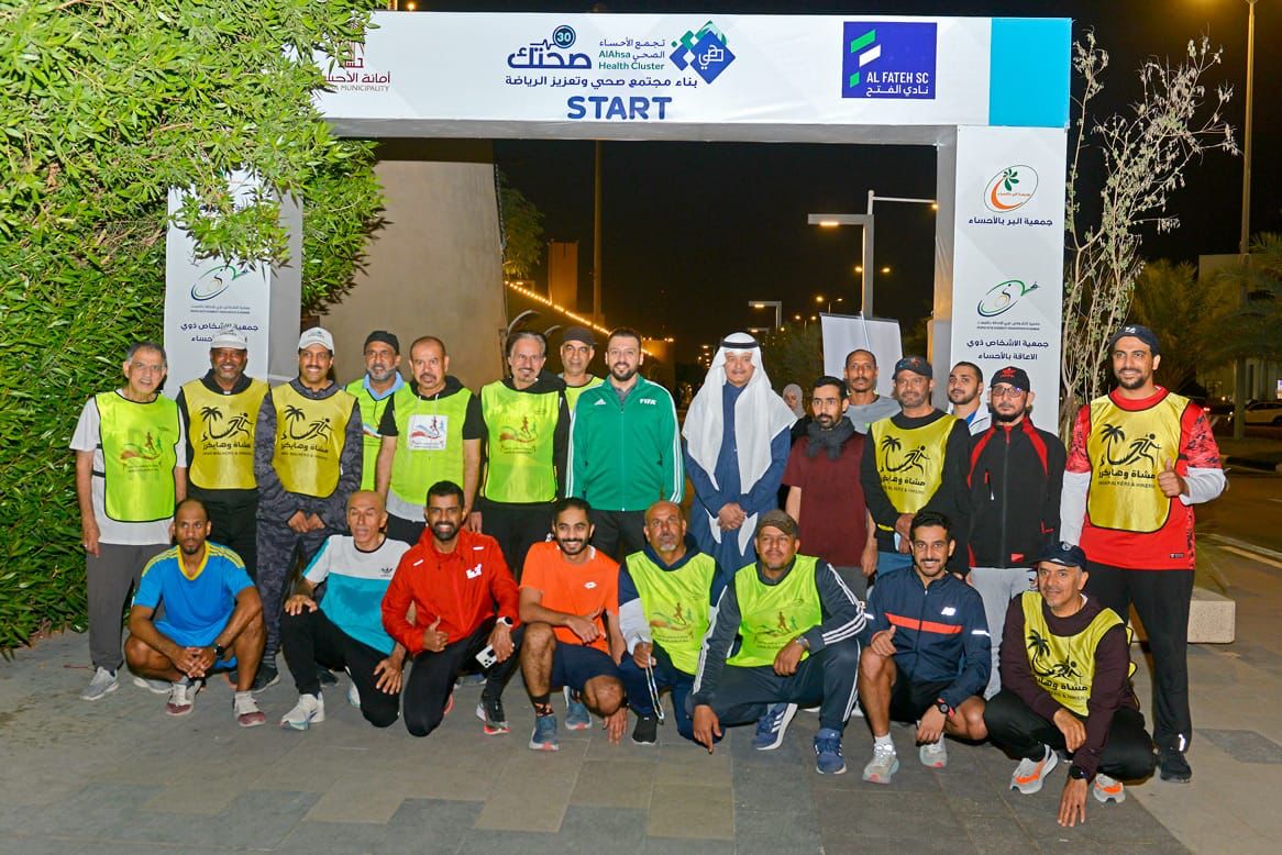 بمشاركة الفرق الرياضية التابعة للجمعية : مشاة وهايكرز الاحساء ، مشاه الاحساء النسائي ، عدائي الاحساء ، و مشاه وهايكنج هجر .