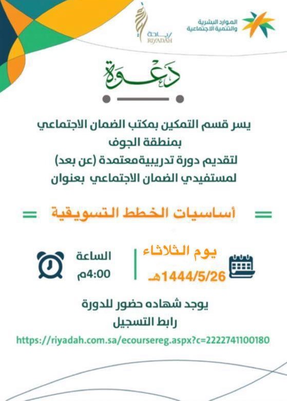 ضمان الجوف ينظم دورة تدريبية بعنوان (أساسيات الخطط التسويقية)