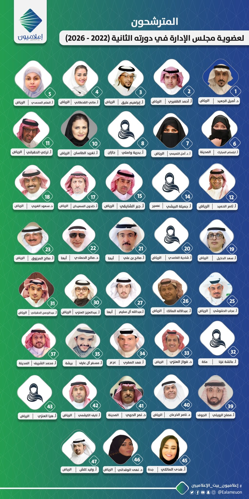 يتنافس مساء  غدٍ الخميس، 37 إعلاميًا وإعلامية على الفوز بعضوية مجلس إدارة جمعية “إعلاميون” في دورته الثانية (2022 – 2026).