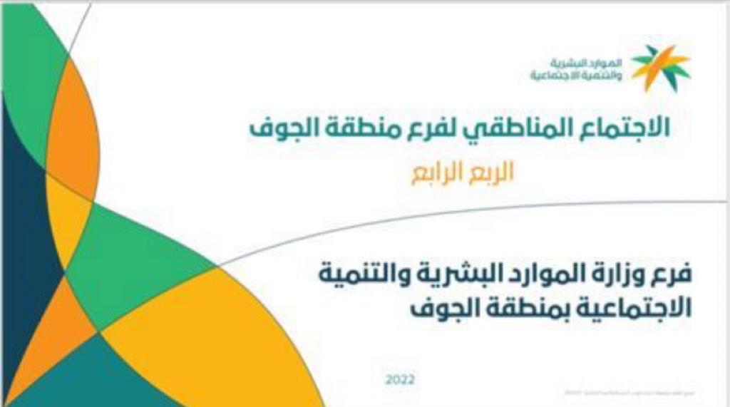عقد فرع وزارة الموارد البشرية والتنمية الاجتماعية بمنطقة الجوف اليوم الأربعاء الموافق١٤٤٤/٥/٢٧هـ بمشاركة سعادة المدير العام الأستاذ/نائل بن عبدالعزيز الرويلي ومساعديه ومدراء الإدارات والفروع بالمنطقة الاجتماع المناطقي للربع الأخير لعام 2022 عن بعد .