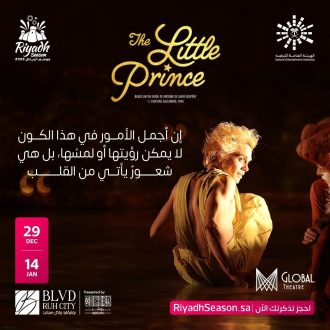 يستعد مسرح Global في بوليفارد رياض الخميس المقبل لعرض عالمي جديد ينقله لعالم مختلف وساحر ، مستوحى من القصة الكلاسيكية الأمير الصغير التي لازالت تتصدر قصص الفانتازيا العالمية ، وتحكي قصة طيار يهبط وسط الصحراء ، يلتقي بالأمير الصغير، لينضم إليه في رحلة ومغامرات غير عادية ، يتعرف فيها على العديد من الشخصيات العديد من الشخصيات تعلمهم الإيمان بأنفسهم واتباع قلبهم نشاهد أحداثها من خلال عرض مسرحي موسيقي باهر و استعراضات راقصة ساحرة يحلق فيها أبطال القصة عاليا يتحول فيها الخيال إلى حقيقة على المسرح.