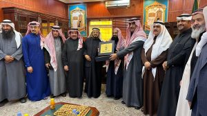 قامت مجموعة عطاء ووفاء للوطن برئاسة الأستاذ ناصر العواد رئيس المجموعة ورئيس أمناء المؤسسة بزيارة وتكريم معالي الأستاذ الدكتور جبريل بن محمد البصيلي عضو هيئة كبار العلماء ومفوض الإفتاء بمنطقة عسير وذلك بمكتبه بفرع الرئاسة العاملة للبحوث العلمية والإفتاء بمنطقة عسير.