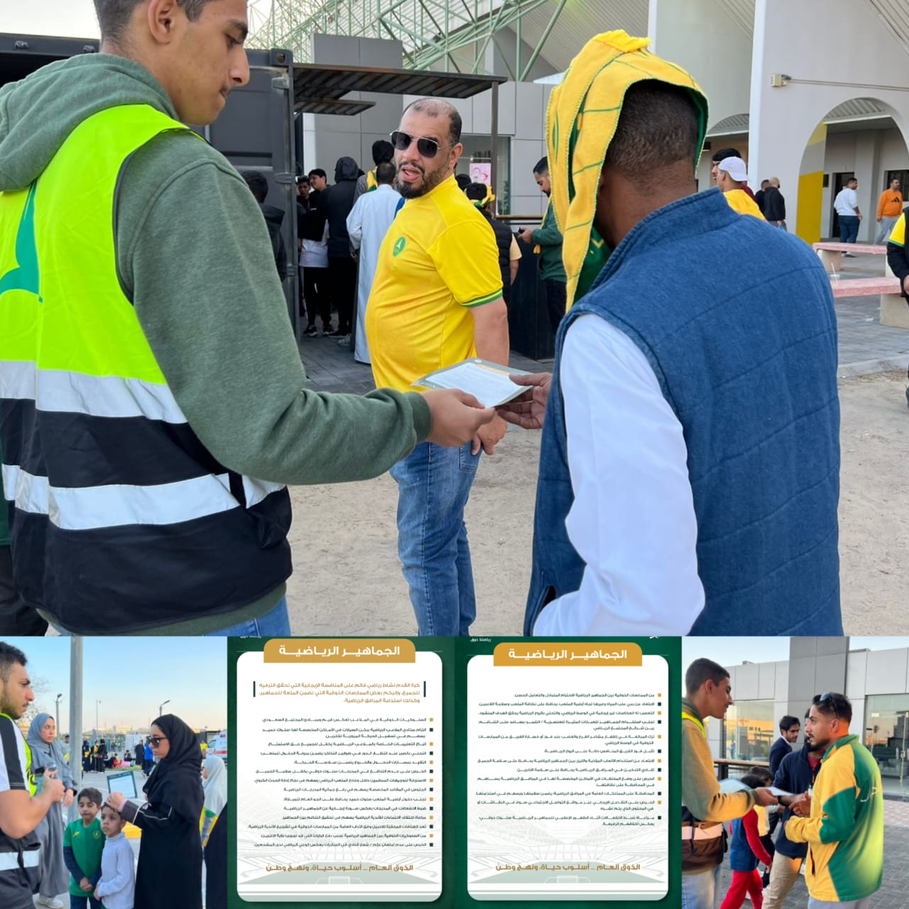 وعلى الصعيد الميداني بدأت الجمعية بالشراكة مع عدد من الأندية الرياضية بتوزيع النشرات التوعوية والتثقيفية للجماهير الرياضية، انطلاقًا من مباراة الخليج والرائد المقامة يوم أمس الجمعة في استاد الأمير محمد بن فهد بمدينة الدمام، وذلك بالتعاون مع نادي الخليج السعودي، سعيًا لظهور الجماهير في أفضل الصور، حيث تسعى الجمعية من خلال هذا المنشور إلى تعزيز القيم والممارسات الحسنة لدى جماهير الأندية الرياضية، وتسليط الضوء على السلوكيات الذوقية لديهم.