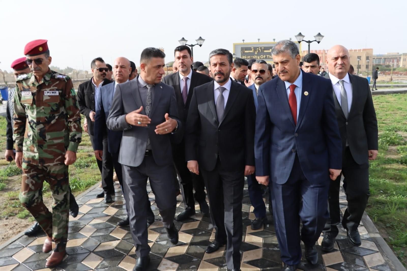 استقبل السيد رئيس جامعة ذي قار الأستاذ الدكتور يحيى عبد الرضا عباس معالي وزير التعليم العالي والبحث العلمي الدكتور نعيم العبودي برفقة وكيل الوزارة للشؤون الفنية الدكتور حيدر عبد ضهد وعدد من رؤساء الجامعات ومسؤولي الحكومة المحلية والأمنية في المحافظة ولدى زيارته جامعة ذي قار افتتح وزير التعليم العالي والبحث العلمي مشروع البنى التحتية في المدينة الجامعية الذي يبلغ طوله ٣.٢٥ كم وعرض ١٥م الذي تم تنفيذه من قبل قسم الأعمار والمشاريع بجامعتنا وبجهود اللجنة المشرفة على هذا المشروع .