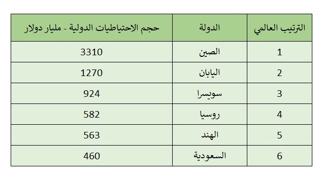 أما السعودية، أكبر اقتصاد عربي، فحلت في المرتبة السادسة باحتياطيات دولية بلغت 460 مليار دولار، وبحسب البيانات فقد صعدت المملكة في 2022 بواقع مرتبتين.