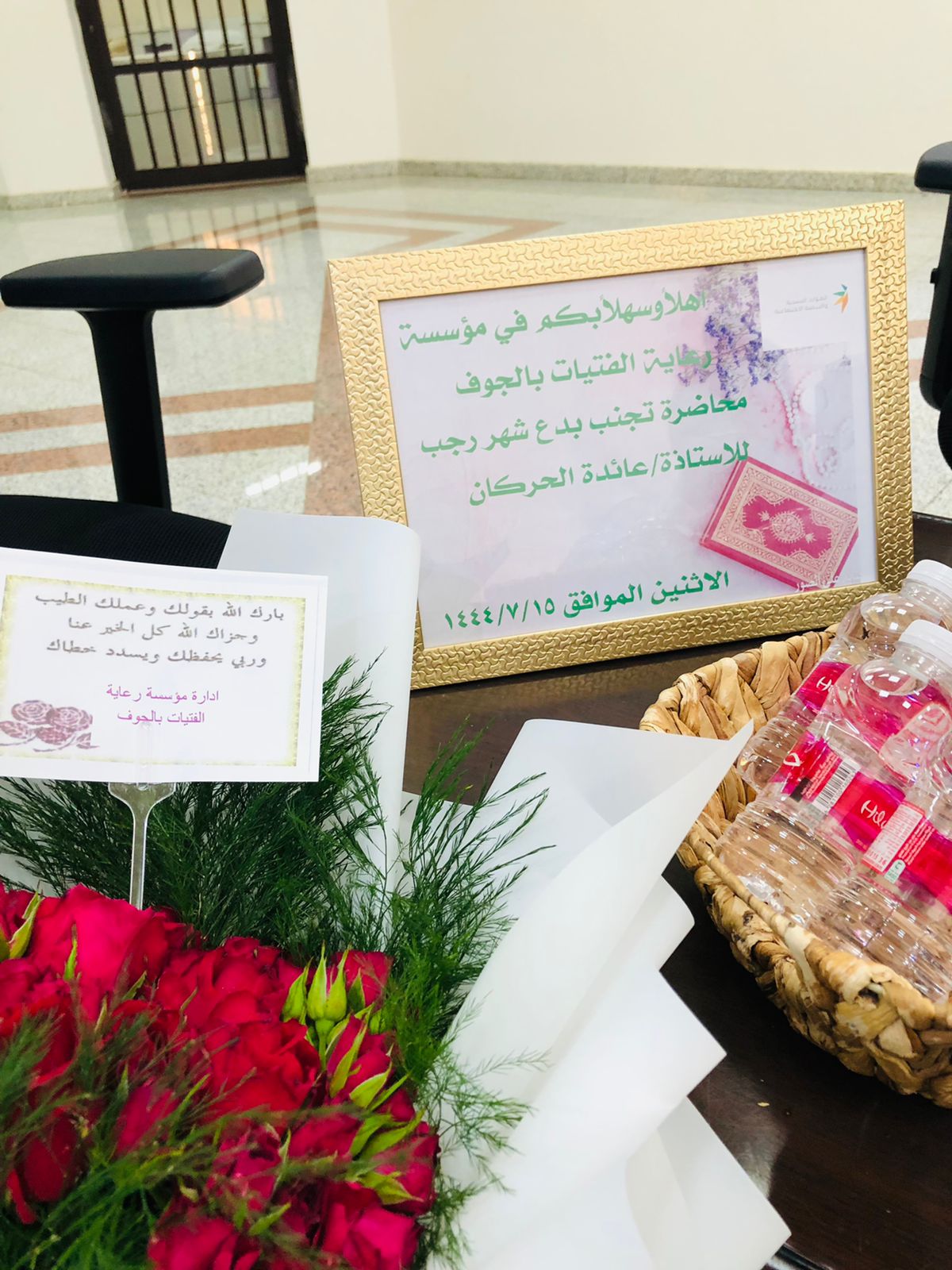 أقامت مؤسسة رعاية الفتيات بالجوف ، بالتعاون مع مكتب الدعوة والإرشاد بسكاكا محاضرة توعوية ضمن خطة البرامج بالمؤسسة لمنسوباتها بعنوان (محاربة بدع شهر رجب )اليوم الاثنين ١٤٤٤/٧/١٥هـ وقدمتها الداعية /عائدة الحركان.