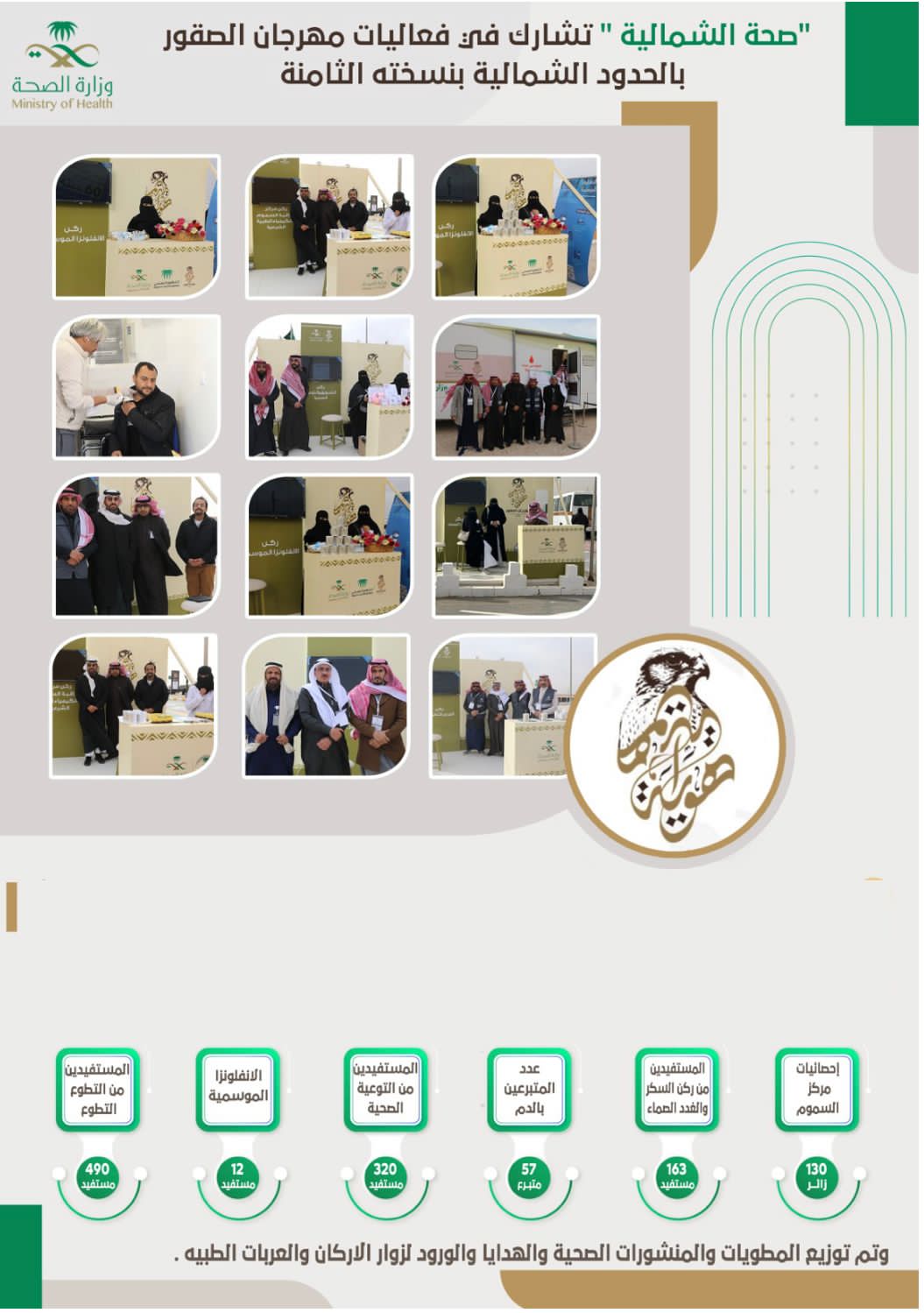“صحة الشمالية ” تشارك في فعاليات مهرجان الصقور بالحدود الشمالية بنسخته الثامنة