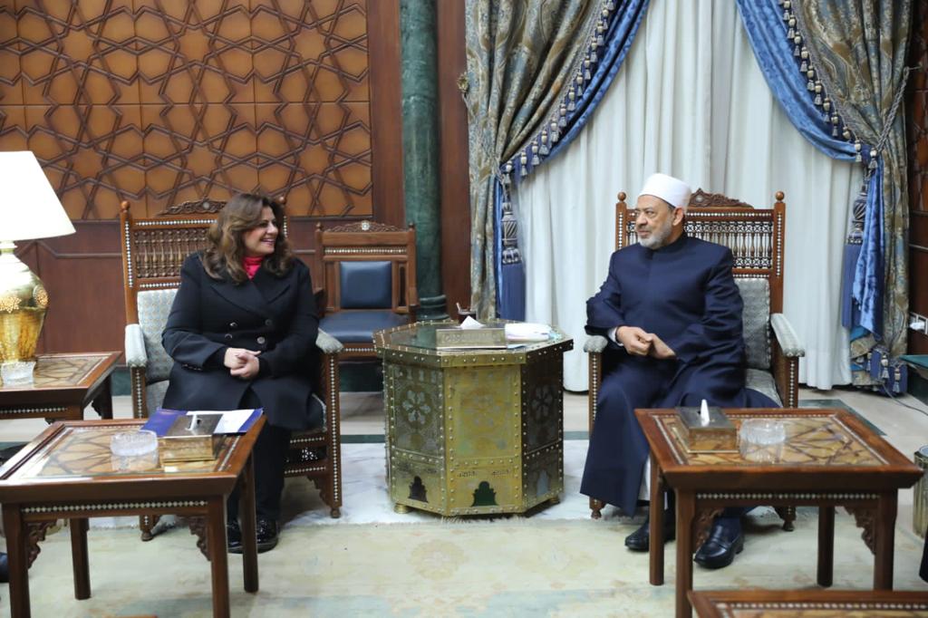 الإمام الأكبر يستقبل وزيرة الهجرة ووفد مؤسسة “بيت العبادة” الأمريكية