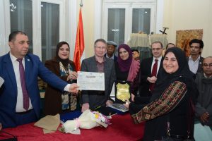 بحضور الوزير المفوض بجامعة الدول العربية د/ حيدر الجبوري، الوزير بالأمانة العامة د/ عصام البرام، د/ فينوس فؤاد وكيل وزارة الثقافة، د/ علي القُحيف رئيس اتحاد شباب العرب، د/ ماجد الاسي الأمين العام ، المهندس/ صلاح عبد التواب مدير مكتب مصر، وشريف جاد رئيس الجمعية المصرية لخريجي الجامعات الروسية والسوفيتية، وبمشاركة كوكبة من قيادات الجامعة العربية وأعضاء السلك الدبلوماسي وسفراء الدول العربية، وعدد كبير من الفنانين من محافظات مختلفة، بالإضافة إلى مشاركة السودان والكونغو.