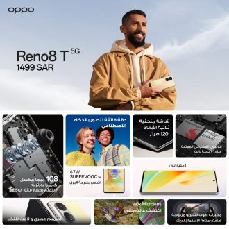 أطلقت اوبو السعودية هاتفها المحمول الجديد Reno8 T 5G وهو أحدث إضافة من سلسلة Reno حيث يأتي بتصميم رائع وشاشة منحنية ثلاثية الأبعاد 120 هرتز توفر أفضل تجربة لمشاهدة فاخرة ،وكاميرا 108 ميغا بيكسل، ولون ذهبي متلألئ أو اسود كلاسيكي، وسرعات شحن فائقة وتصوير دقيق وميزات تجعله هاتفا رائدا وعصريا .