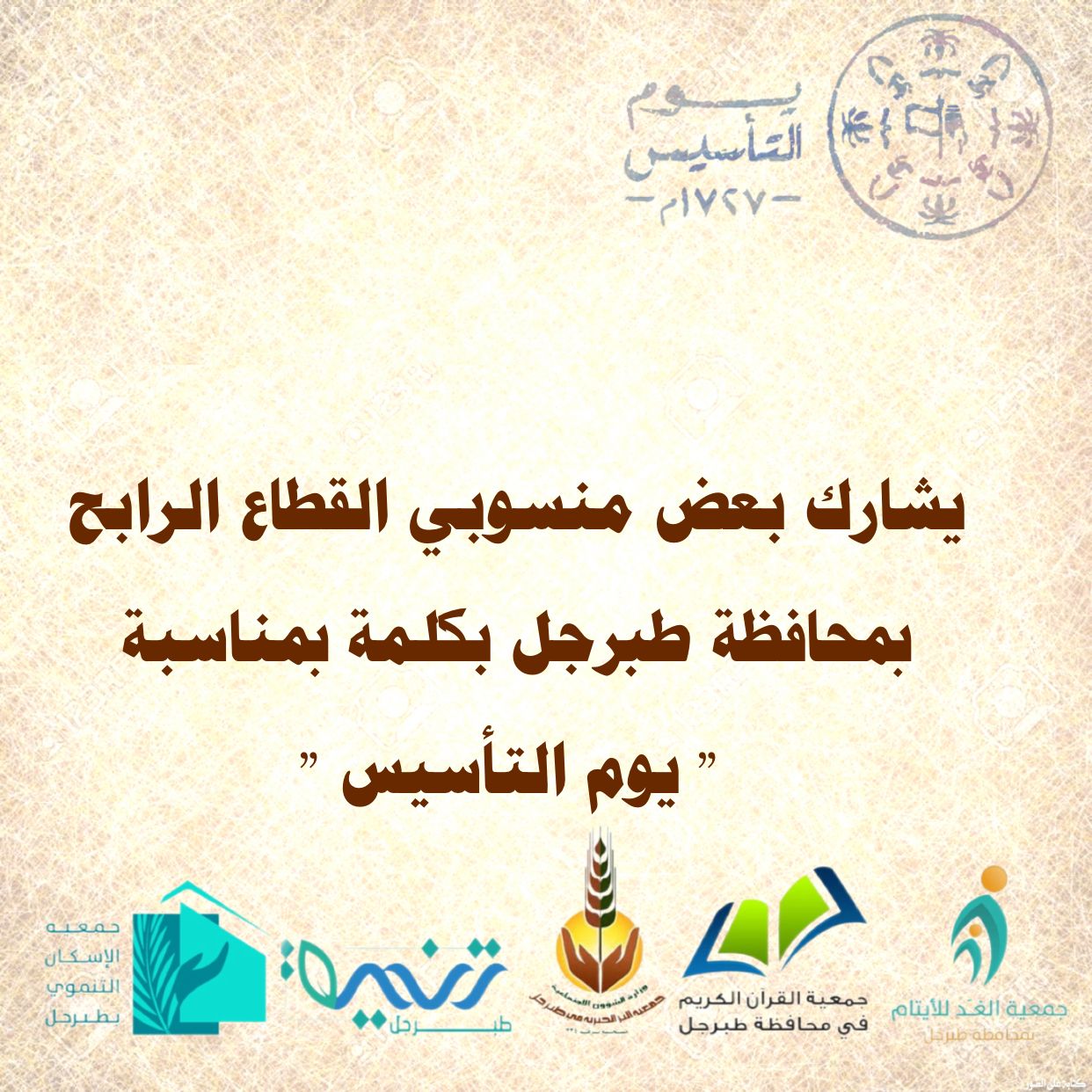 تهنئة جمعيات محافظة طبرجل للوطن في يوم التأسيس