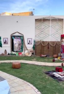 “يوم بدينا ” حفل التأسيس الذي تميز بأركان نصبت فيها الخيام التراثية المتعددة المصنوعة بأيدي محترفة ؛ كل خيمة تعكس جانب تراثي يعبر عن منطقة من مناطق مملكتنا الخضراء ، أو يمثل حرفة من الحرف التي نعتز بها و نفخر.
