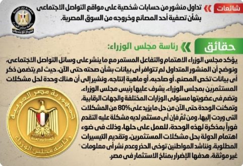 نفت رئاسة مجلس الوزراء في مصر ما تداوله نشطاء على مواقع التواصل الاجتماعي بشأن تصفية أحد المصانع وخروجه من السوق المصرية.