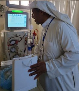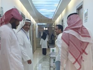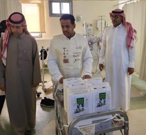 ‏وقد استقبلتهم الأخصائية الاجتماعية أمل الشيباني وأخذتهم في جولة إنسانية هادفة على وحدتي الكلى حيث قام أعضاء الفريق بتقديم التهنئة للمرضى بيوم التأسيس ، والدعاء لهم بالشفاء العاجل وتقديم الهدايا الرمزية وبطاقات سلة الغذاء لهم، وقد ارتسمت السعادة على محياهم وأشرقت وجوههم بنور الرضى والأمل بالشفاء .