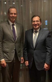 بحث المهندس طارق الملا مع السيد جون كريستمان رئيس شركة اباتشي الأمريكية ، الخطط والمشروعات التي تنفذها الشركة للبحث والاستكشاف والانتاج للزيت الخام والغاز الطبيعى في صحراء مصر الغربية ، وكذلك سبل تعزيز التعاون وزيادة الاستثمارات في ضوء الشراكة المتميزة بين قطاع البترول وشركة أباتشي كأكبر منتج للزيت الخام في مصر.
