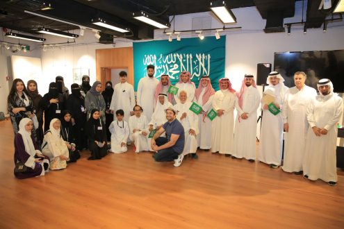 كما شارك ٢٦ متطوعاً من الرسامين من فريق بصمة التطوعي التابع لجمعية البر من خلال رسم لوحات متميزة للعلم السعودي.