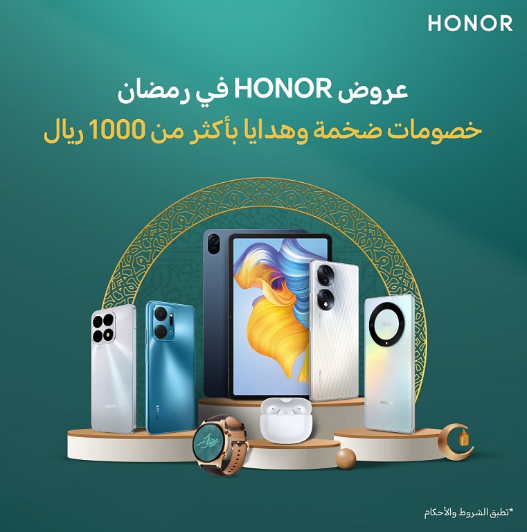 كجزء من حملة “لحظات تجمعنا”، يُمكن لعُملائنا الاستمتاع بتوفير ما يصل إلى 300 ريال سعودي على مُنتجاتهم المفضلة من HONOR، ما يجعل رمضان فرصة عظيمة للارتقاء بحصيلتهم من الأجهزة الذكية. بالإضافة إلى هذه الخصومات الرائعة، سيحصل عُملاؤنا أيضًا على هدايا مجانية بقيمة تصل إلى 1027 ريال سعودي، ما يجعل تجربتكم الشرائية أكثر حماسًا. ومع اقتراب عيد الأم أيضًا، فإن عروض حملة “لحظات تجمعنا” قد تكون فرصة رائعة للتعبير عن تقديركم وحُبكم لأمهاتكم، وفي نفس الوقت تقديم عالم ذكي جديد لهم بفضل مُنتجات HONOR الذكية.