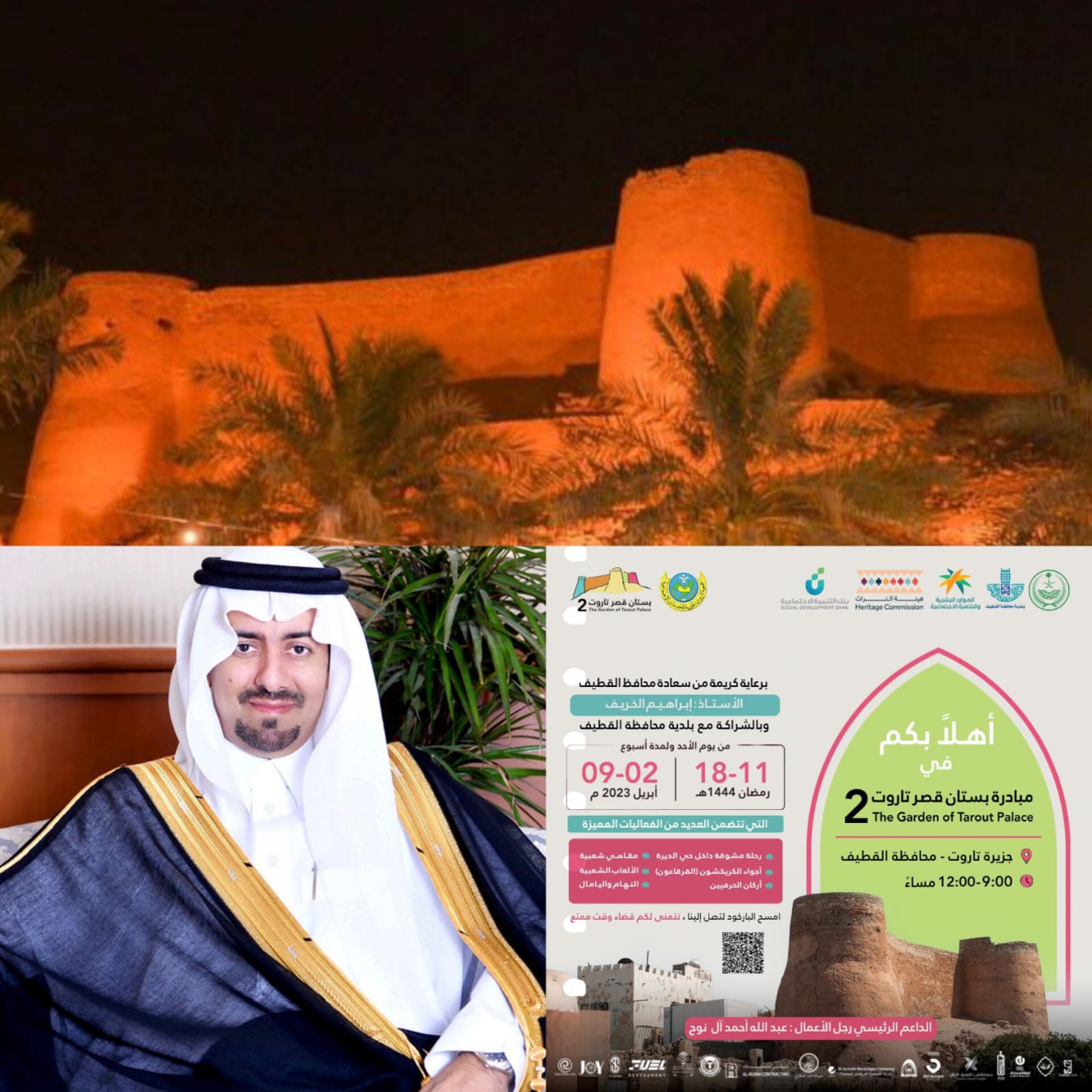 انطلقت مساء الأحد 11 رمضان 1444هـ، النسخة الثانية من مبادرة “بستان قصر تاروت”، التي تنظمها جمعية تاروت الخيرية، برعاية محافظ القطيف إبراهيم بن محمد الخريف، وبالشراكة مع بلدية محافظة القطيف، بساحة قلعة تاروت الأثرية، وتستمر حتى 18 من شهر رمضان المبارك 1444هـ.
