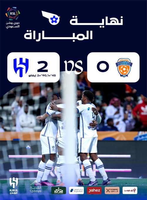 ورفع الهلال رصيده بهذا الفوز لـ 45 نقطة بفارق نقطة عن نظيره الشباب الذي تراجع إلى المركز الرابع، فيما بقي رصيد الفيحاء عند 24 نقطة في المركز العاشر.