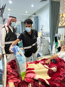 ثم توجه الفريق الزائر بعدها لوحدة الغسيل لزيارة المرضى والاطمئنان عليهم، حيث قام أبناء المؤسسة ومشرفوهم بتوزيع (27 لحافاً) على المرضى في بادرة إنسانية تجسد دلالات التكافل والتراحم.