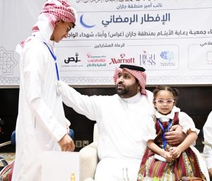 برعاية كريمة من صاحب السمو الملكي الأمير محمد بن ناصر بن عبدالعزيز، أمير منطقة جازان، شارك صاحب السمو الملكي الأمير محمد بن عبدالعزيز بن محمد بن عبدالعزيز نائب أمير منطقة جازان مساء اليوم، عدداً من الأيتام وذوي الإعاقة وأبناء الشهداء إفطارهم الرمضاني، الذي نظمته جمعية “غراس” لرعاية الأيتام ، وذلك بفندق ماريوت في مدينة جيزان.