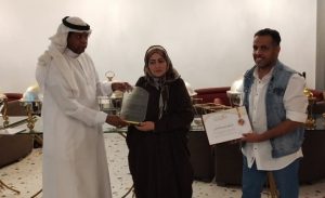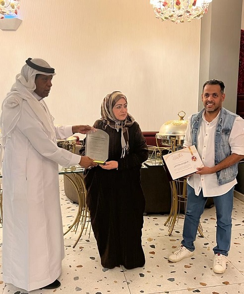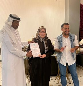 بعد ذلك تفضل الكابتن حسن العبسي والمهندس عادل عثمان السيد بتكريم الدكتورة وسيلة الحلبي الداعم الإعلامي لفريق جدد حياتك لجودة الحياة حيث قدم لها “درعا تذكاريا وشهادة شكر وتقدير وبطاقة عضوية دائمة”.