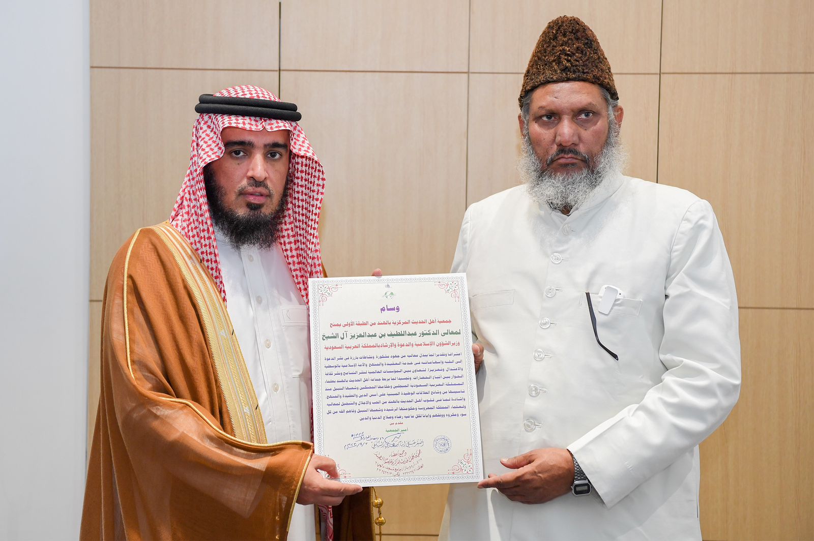 منحت جمعية أهل الحديث المركزية لعموم الهند وسامها من الطبقة الأولى لمعالي وزير الشؤون الإسلامية والدعوة والإرشاد الشيخ الدكتور عبداللطيف بن عبدالعزيز آل الشيخ تقديراً من الجمعية لجهوده الكبيرة والمتواصلة في نشر الدعوة إلى الله وإسهاماته في خدمة العقيدة ونشر المنهج الوسطي المعتدل، وتعزيز روح التعاون بين المؤسسات العالمية لنشر التسامح وثقافة الحوار بين أتباع الحضارات العالمية.
