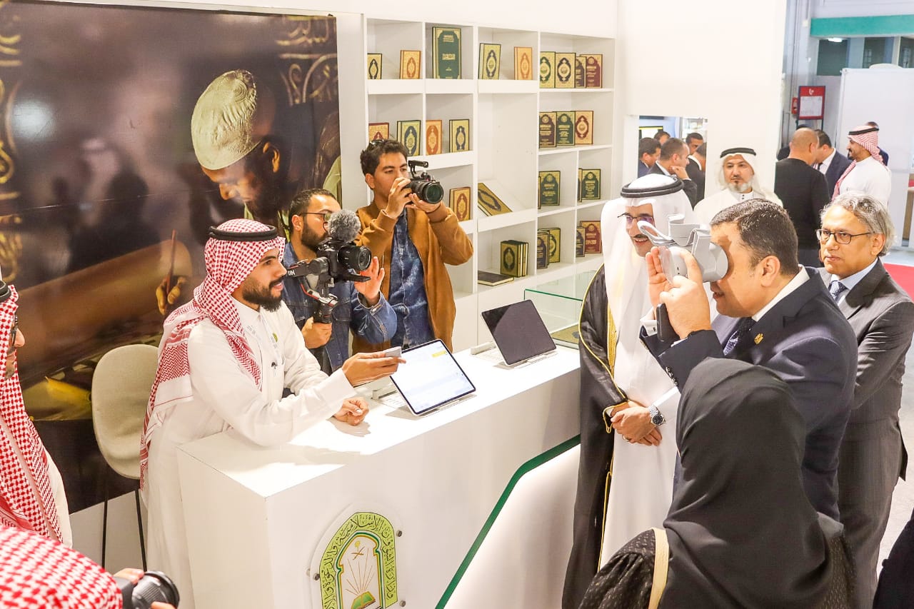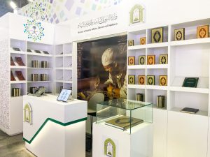 ويعرض ركن الوزارة – المشارك ضمن جناح المملكة – مجموعة كبيرة ومتنوعة من إصدارات مجمع الملك فهد لطباعة المصحف الشريف بالمدينة المنورة وترجمة معاني آيات القرآن الكريم.. حيث بلغت 77 ترجمة وعرض 8 روايات ومصحف برايل الخاص بالمكفوفين، وأيضا التفسير الميسر.. كما يستعرض عددا من التطبيقات الالكترونية كتطبيق الحج والعمرة الافتراضي ثلاثي الأبعاد، وتطبيق الاستشهاد الصحيح، وتطبيق رشد.. كما يمكّن زوار المعرض من زيارة الحرم النبوي الشريف عبر تقنية الواقع الافتراضي.