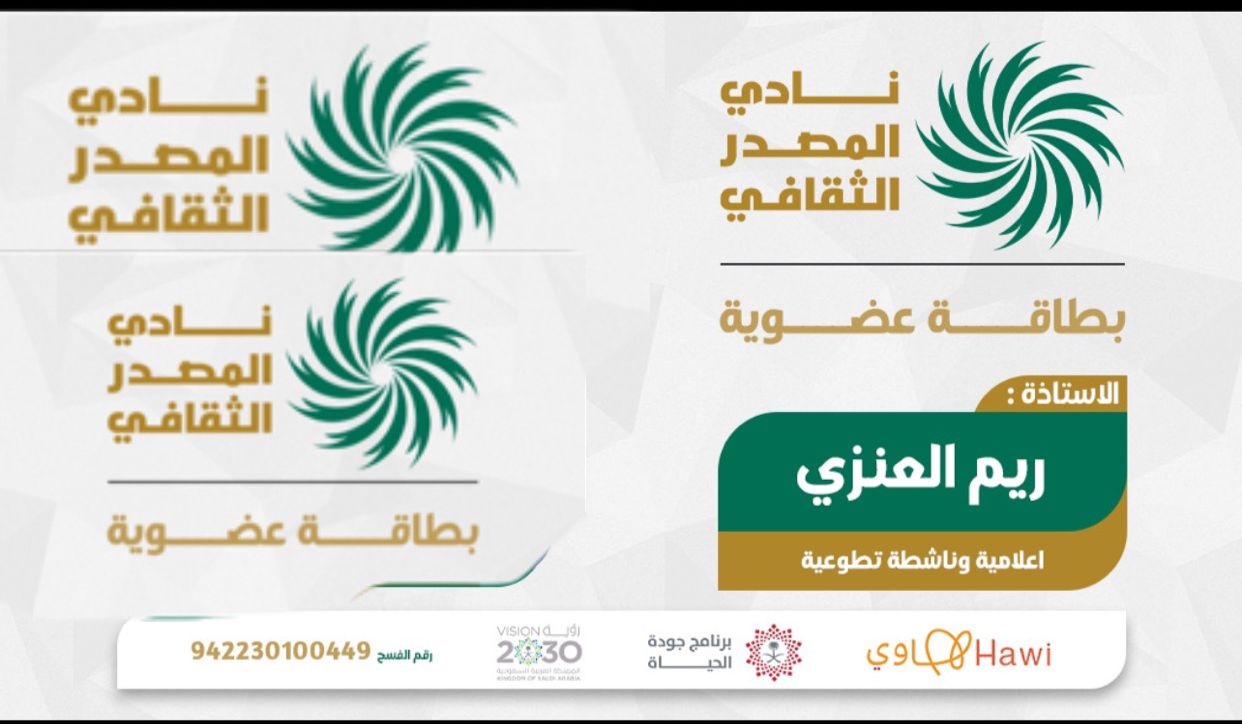انضمت الإعلامية ريم العنزي لنادي المصدر الثقافي ، وتعتبر العنزي من الاعلاميات المتميزات بالمنطقة الشمالية وناشطة في الاعمال التطوعية .